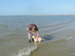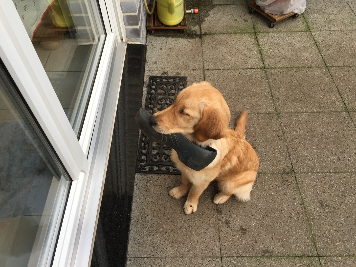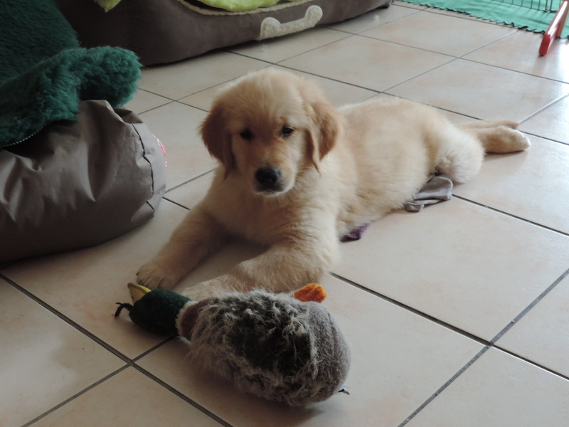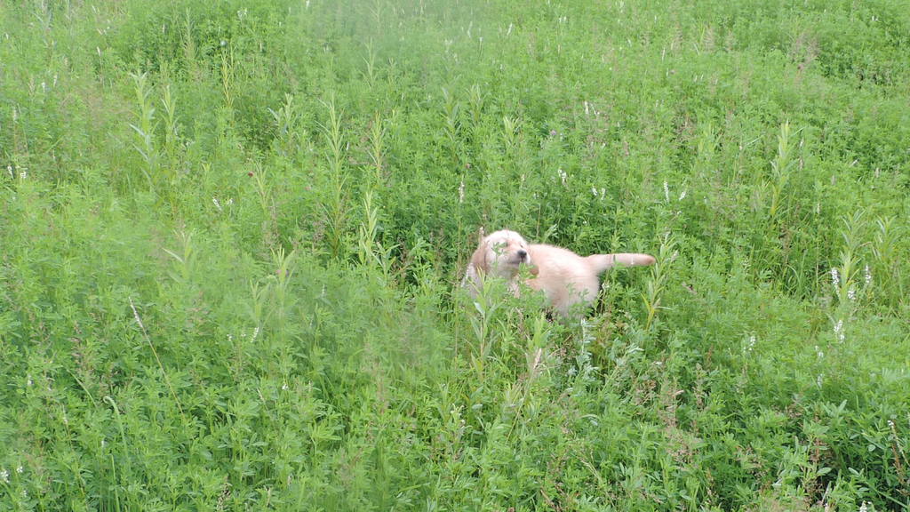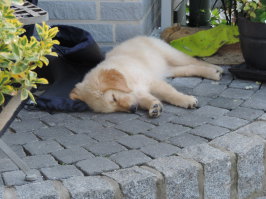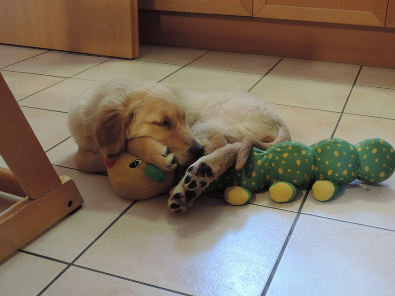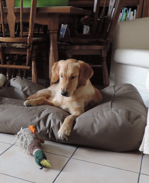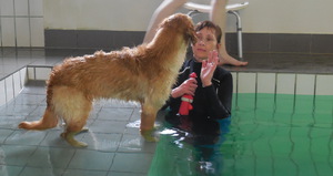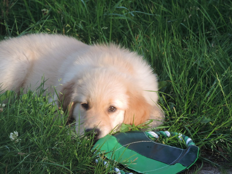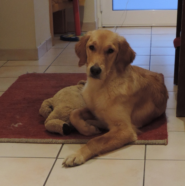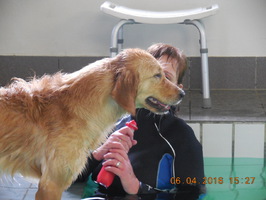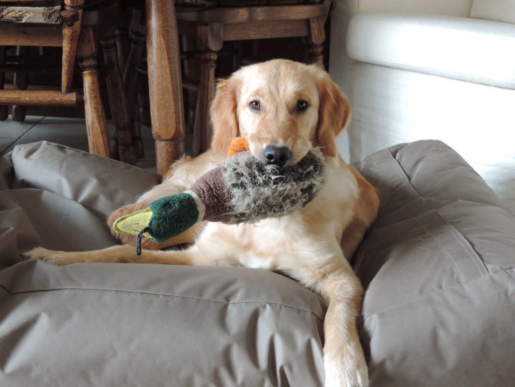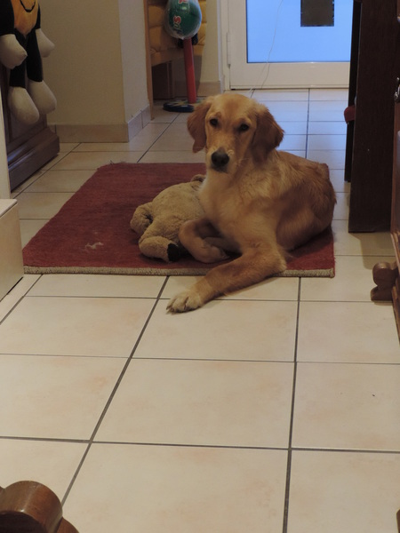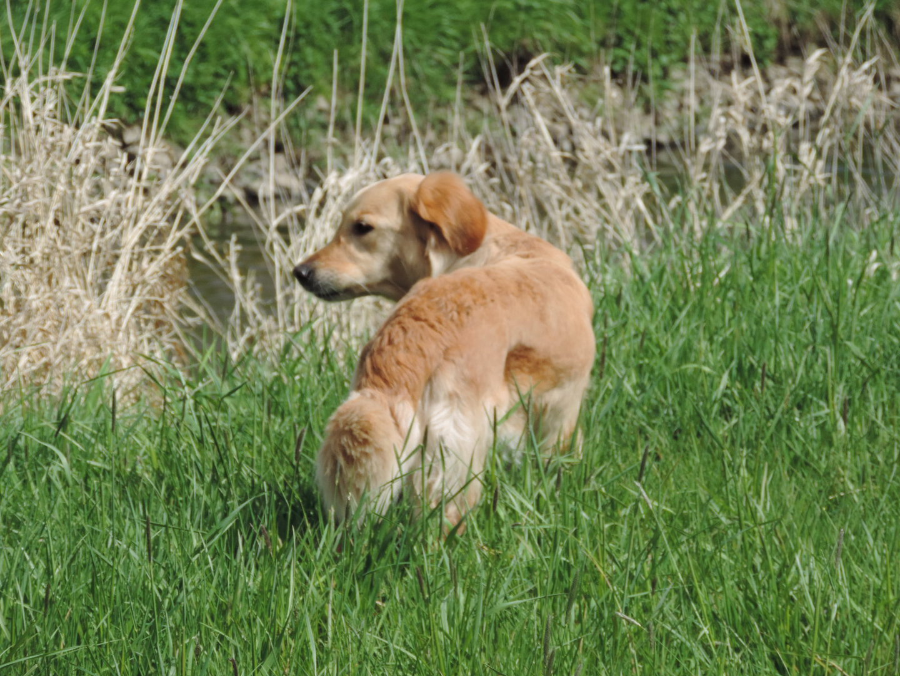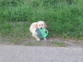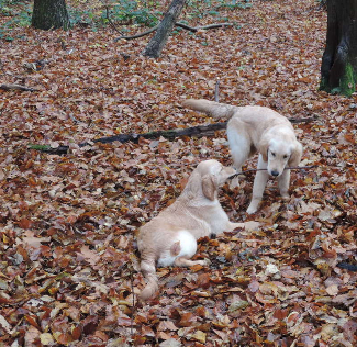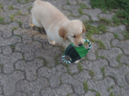 trainieren fleißig. Aber auch der Spaß kommt nicht zu kurz, denn ich darf oft Frauchens Dummy tragen und auch zurückholen wenn sie ihn "verloren" hat.