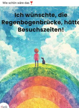 Wenn Du mich vermisst, denke an einen Regenbogen und weißt, dass ich auf der anderen Seite bin und darauf warte, mit Dir zu gehen.